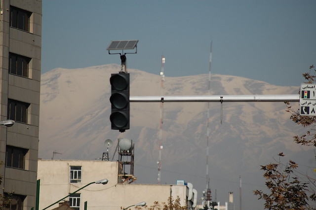 La autopista de entrada a Teherán es muy grande y con bastante tráfico. Coches, camiones, furgonetas, autobuses bastante destartalados para la visión de un occidental.